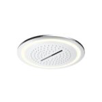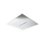 Soffione a LED Ø500 mm, in acciaio inox, per installazione ad incasso a soffitto, getto a pioggia e a cascata.