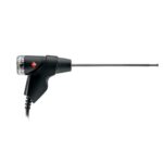 Sonda compatta per fumi con tubo lungo 300 mm, filtro antiparticolato e termocoppia. L’attacco a baionetta garantisce un collegamento semplice e veloce allo strumento di misura.