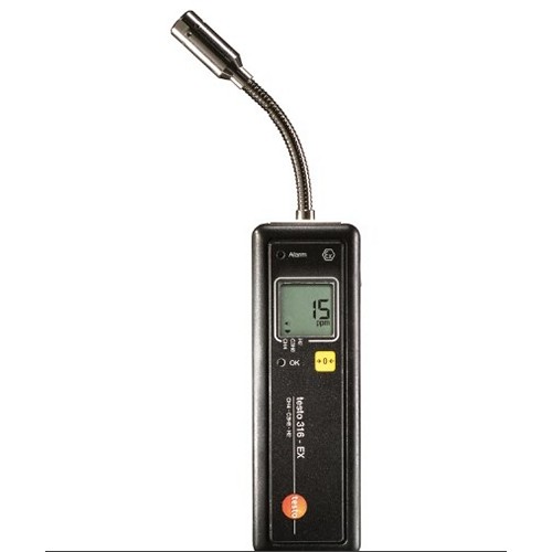 Rilevatore elettronico di perdite di gas testo 316-EX con protezione EX, batterie, valigetta, chiave a brugola e protocollo di collaudo.