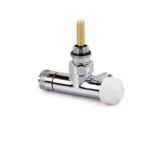 0688-1500D0P0 Valvola monotubo/bitubo ad attacco verticale, a squadra, termostatizzabile con detentore incorporato; attacchi per tubo rame e multistrato, completa di sonda da 450 mm. Iinterasse 38 mm. DESTRA