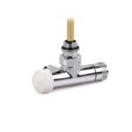 0689-1500D0E0 Valvola monotubo/bitubo ad attacco verticale, a squadra, termostatizzabile con detentore incorporato; attacchi per tubo rame e multistrato, completa di sonda da 450 mm. Interasse 38 mm. SINISTRA
