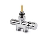 0689-1500D0P0 Valvola monotubo/bitubo ad attacco verticale, a squadra, termostatizzabile con detentore incorporato; attacchi per tubo rame e multistrato, completa di sonda da 450 mm. Interasse 38 mm. SINISTRA