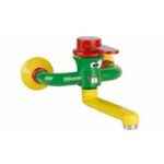 Miscelatore temporizzato per lavabo/lavello serie MINIMAL a parete con comando a pulsante e bocca girevole
