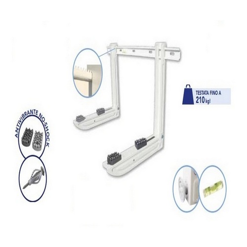 La staffa è disponibile nei modelli SGL100 EVO e SGL140 EVO. È costruita in lamiera elettrozincata e verniciata con polvere poliestere resistente agli agenti atmosferici. La barra di fissaggio a muro dotata di dentini, consente l’ancoraggio e la regolazione della distanza tra bracci reggimensola, senza che questi possano scorrere durante la fase di installazione. I supporti sono predisposti al montaggio della bacinella raccolta condensa. La silenziosità è ottenuta da appositi antivibranti sulle mensole e piedini regolabili snodati posti sul retro del braccio che eliminano tutte le vibrazioni trasmesse dalla macchina.