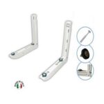 La mensola è disponibile in lamiera elettrozincata e verniciata con polvere poliestere resistente agli agenti atmosferici. I supporti sono predisposti al montaggio della bacinella raccolta di condensa. La silenziosità è ottenuta da appositi antivibranti sulle mensole. La mensola è collaudata e certificata con un peso statico pari a 1,5 volte quello dichiarato. Disponibile in singola confezione completa di: antivibranti, viteria, tasselli di fissaggio a muro.