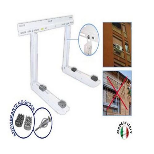 Il sistema di aggancio presente tra la staffa e la barra a muro, permette una rapida e facile installazione nei condomini o in presenza di elevate altezze. Evitando il montaggio ed il costo dell’impalcatura. Il climatizzatore si fissa comodamente all’interno dell’abitazione sulla mensola, per poi essere agganciato con facilità sulla barra a muro già precedentemente montata sotto la finestra.