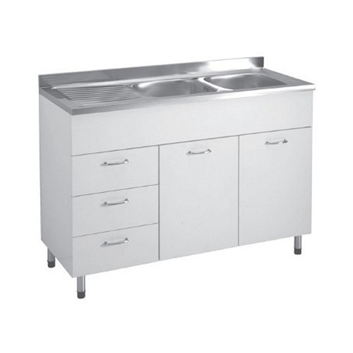Sottolavello con lavello inox vasche destre e cassetti 120x50xh91,5 BIANCO