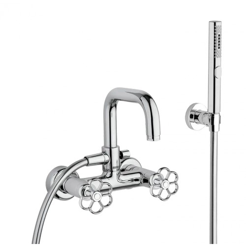 Miscelatore tradizionale esterno per vasca con deviatore automatico e accessorio doccia.