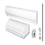 La barriera posizionata internamente sopra la porta d’ingresso, genera un flusso che, spinto velocemente verso il basso, crea una netta separazione tra il volume d’aria interno e quello esterno. La barriera permette così di climatizzare correttamente gli ambienti senza alcuna dispersione, sia nella stagione estiva che in quella invernale.