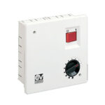 Gruppo comandi per ventilatori Vortice. Alimentazione monofase 220-240 V / 50 Hz. Installazione a parete, trasformabile ad incasso con il kit opzionale SCB5. Colore bianco. Carico massimo ammissibile: 0.5 A. Funzioni: On/Off, Selezione velocità (5 alternative).
