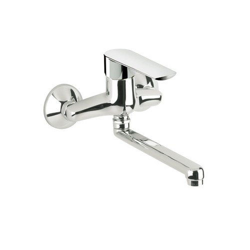 142400 Miscelatore lavello a parete con bocca girevole. Disponibile in diverse finiture, per maggiori informazioni contattateci.