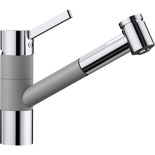 1517611 Miscelatore canna rialzata con doccetta estraibile a due getti TIVO-S Alumetallic/Cromato BLANCO