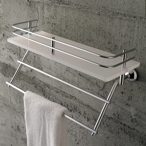 1538-C L’immagine ha solo scopo illustrativo, per misure/colori esatti fare riferimento alla descrizione e/o alla scheda tecnica. Mensola con ringhiera e porta salviette in ottone cromato.