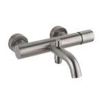 Miscelatore monocomando esterno per vasca con deviatore automatico ed accessorio doccia fisso.