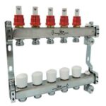 collettore di ritorno con valvole termostatizzabili e cappellotti di regolazione