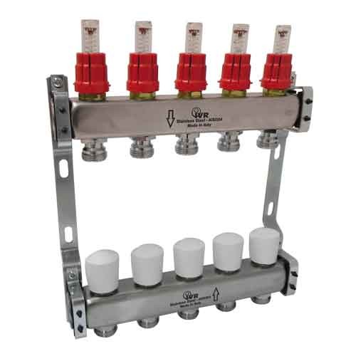 180632511 Coppia collettori inox 11vie 1″1/4 c/misuratori e volantini IVR