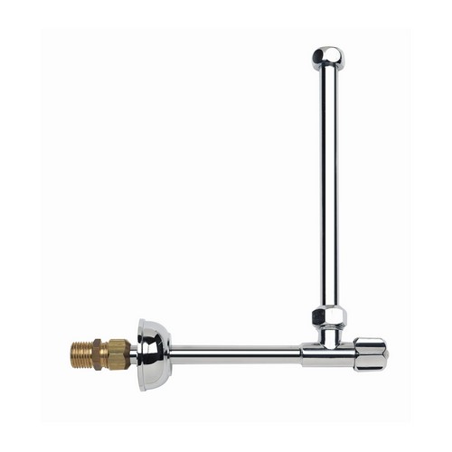 Rubinetto completo a squardra con tubi in rame 180 x 240, niples giallo, rosone in ottone e dado da 1/2”. Cromato.