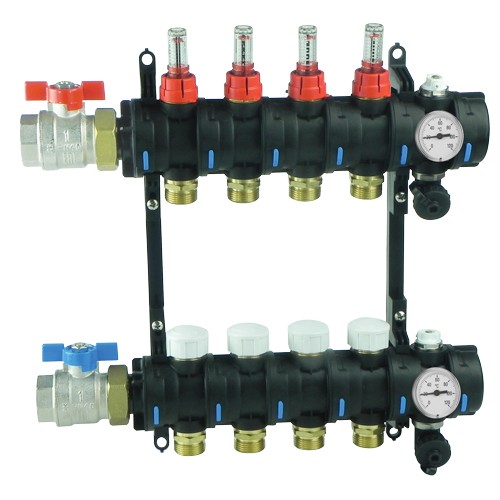 1902A22510 Collettore in tecnopolimero premontato di mandata con misuratori di portata, valvola sfogo