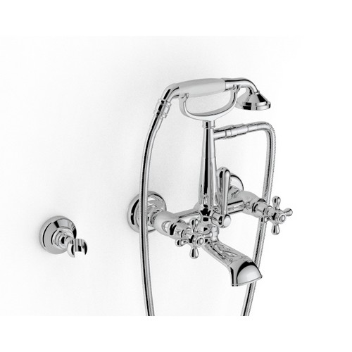 Gruppo vasca esterno cromato tradizionale a parete con getto erogatore – 2 uscite