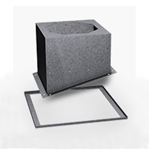 Supporto opzionale BTI completo di flangia di connessione al raccordo per accessori circolari come silenziatori, flange antivibranti BAD e flange di collegamento AC; adatto all’installazione della torretta in corrispondenza di tetti piatti (inclinazione pari a 0°).