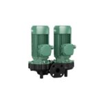 2121233 Pompa gemellare a motore ventilato ad alta efficienza tipo in-line . Alim. 3~400 V/50Hz. Bocche flangiate DN 80 PN 10 . Temp. -20 °C +120 °C. Grado protezione IP 55. Pressione nom. PN 10. Interasse 360 mmDati idraulici