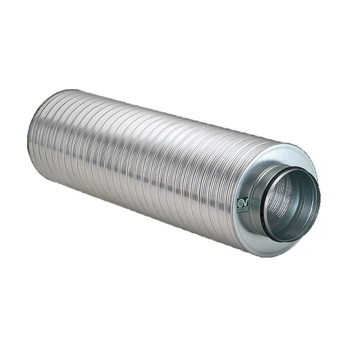 Attenuatore da installare nell’impianto di ventilazione sempre dopo la ventola e/o la scatola del filtro e/o il riscaldatore nel condotto. Utile quando il livello di rumorosità è richiesto particolarmente basso. Temperatura di esercizio da – 30C° a +100C°. Massima pressione di esercizio: 2000 Pa. Massima velocità dell’aria: 25 m/s. Tubo interno eseguito con spirale di lamiera perforata in acciaio zincato, spessore 0,8 mm. Testate di contenimento in film di PE. Isolamento in feltro lamellare in lana minerale, rinforzato con fibra di vetro, spessore 50 mm. Resistenza al calore R = 1,00 m2k/W. Tubo esterno in spiralato in lamiera di acciaio zincato, spessore 0,8 mm.