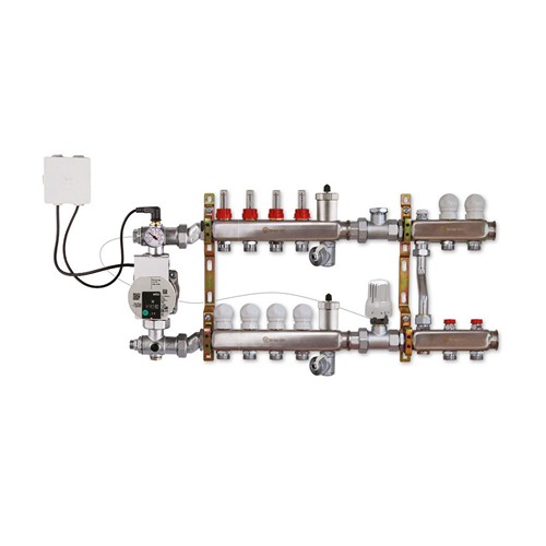 229ATT-06-042 Gruppo di regolazione impianto radiante inox con a.t. 1″x 4+2 vie TE-SA