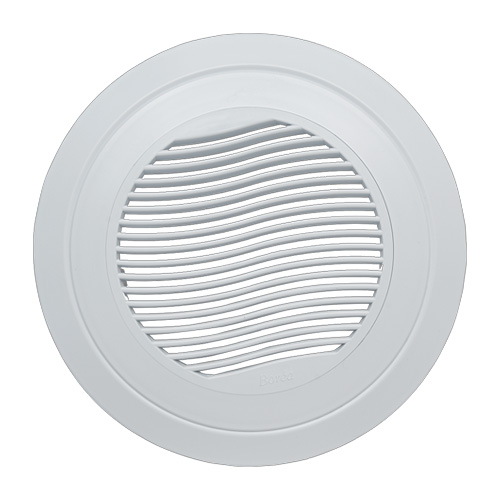 Bocchetta di mandata/ripresa a lancio regolabile. Involucro in polistirene bianco, sistema di apertura/chiusura/regolazione manuale.