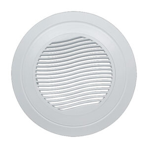 Bocchetta di mandata/ripresa a lancio regolabile. Involucro in polistirene bianco, sistema di apertura/chiusura/regolazione manuale.