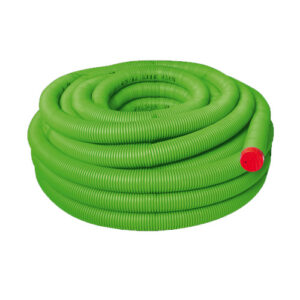 Canale corrugato semiflessibile liscio internamente in PEAD polietilene ad alta densità) a doppia parete. Trattamento autoestinguente esterno e antistatico interno. È utilizzabile per sistema di distribuzione a pavimento (calpestabile).