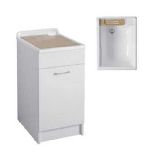 Caratteristiche: mobile in truciolare nobilitato 18 mm. Idrofugo a norme EN, frontale in laminato lucido. Dotazione: fornito di tavola lavapanni in legno massello, + griglia portasapone, lavatoio in ABS metacrilato, sifone e troppopieno, maniglie cromate.