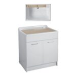 Caratteristiche: mobile in truciolare nobilitato 18 mm. Idrofugo a norme EN, frontale in laminato lucido. Dotazione: fornito completo griglia, tavola in legno massello, lavatoio in ABS metacrilato, sifone e troppopieno, maniglie cromate.
