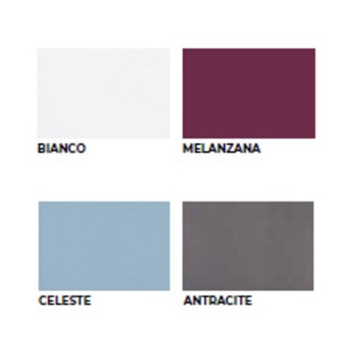 Colore mobile: bianco. Colore frontale: bianco lucido, melanzana lucido, celeste lucido, antracite lucido.