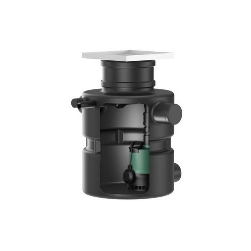 2521820 Stazione di sollevamento con serbatoio da 85 lt (lordi). Pompa sommergibile integrata incl. interruttore a galleggiante. Alim. 1~230 V/50Hz. N. 3 ingressi DN 100. Tubazione interna di mandata premontata DN 40 con valvola di ritegnoDati idraulici