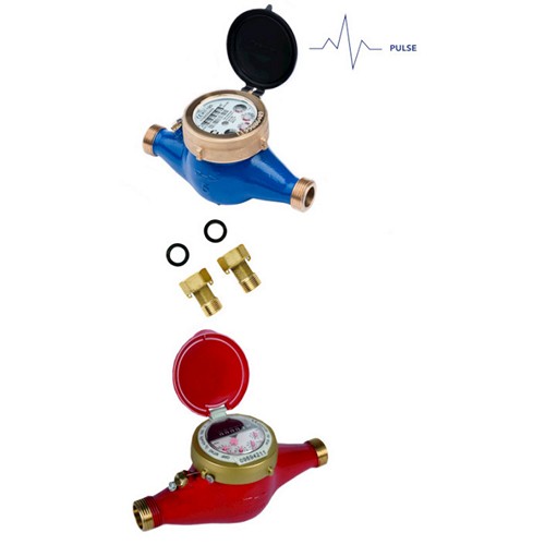 Kit contatore volumetrico a turbina getto multiplo acqua sanitaria per alte portate.