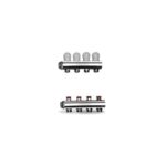 Gruppo di distribuzione fluido ad alta temperatura composto da: collettore di mandata con detentori micrometrici di regolazione, collettore di ritorno con valvole di intercettazione termostatizzabili. Senza staffe.