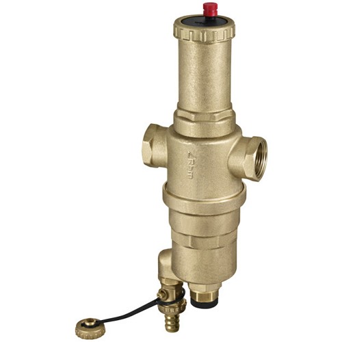 2863.06.00 Defangatore magnetico autopulente / disareatore. Disareatore con funzionamento a galleggiante. Completo di rubinetto a sfera di scarico con attacco portagomma.
