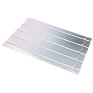 Pannello ottenuto da lastra in EPS 300, fresata per permettere la posa della tubazione, rivestito superficialmente da uno strato di alluminio.