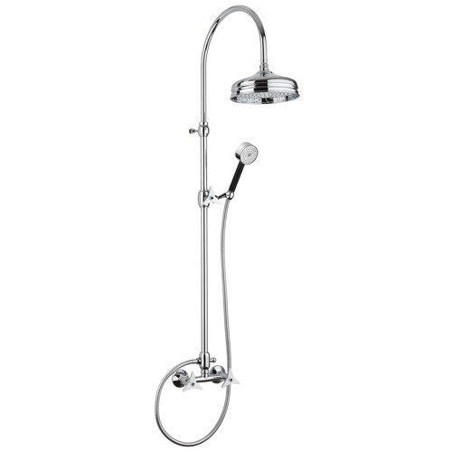 Colonna doccia con miscelatore tradizionale con movimenti ceramici, soffione, accessorio doccia e deviatore automatico.