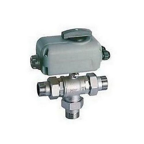 Valvola di zona deviatrice a 3 vie cromata a sfera completa di codoli calotte e servocomando elettrico con sblocco manuale.