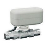 Valvola di zona a 2 vie cromata a sfera con aggancio rapido completa di servocomando elettrico con tensione di alimentazione 230-24 V.