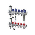 -collettore di mandata con detentori per bilanciamento circuiti con volantino numerato e cappuccio antimanosione