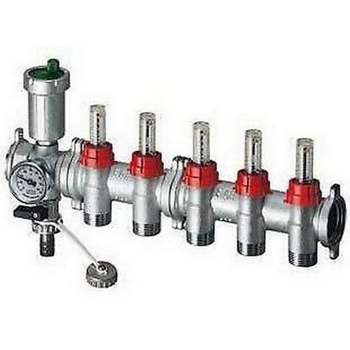 -collettore di mandata con flussimetri e regolatori di portata per bilanciamento circuiti