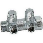 MULTIFAR – Collettore componibile cromato a 2 derivazioni per impianti sanitari o riscaldamento con detentori incorporati per bilanciamento circuiti.
