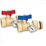 Coppia valvole di intercettazione a sfera. Attacchi femmina – maschio con bocchettone a tenuta O-Ring. Con termometro scala 0÷80°C, Ø 40 mm. Pmax d’esercizio: 10 bar. Campo di temperatura: 0÷100°C. 391167S1