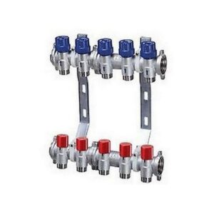 -collettore di mandata con detentori per bilanciamento circuiti con volantino numerato e cappuccio antimanosione