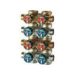 -collettore di mandata con detentori per bilanciamento circuiti con volantino numerato e cappuccio antimanosione