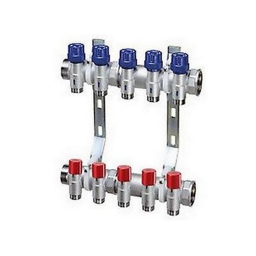 -collettore di mandata con detentori per bilanciamento circuiti con volantino numerato e cappuccio antimanosione