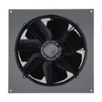 • Motore AC trifase ad 1 velocità, del tipo a rotore esterno per minimizzare gli ingombri assiali, con albero montato su supporti con cuscinetti a sfere, in classe F, termo-protetto.