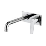 Miscelatore monocomando da incasso per lavabo, composto da parte grezza, parte esterna di finitura e bocca a parete.
